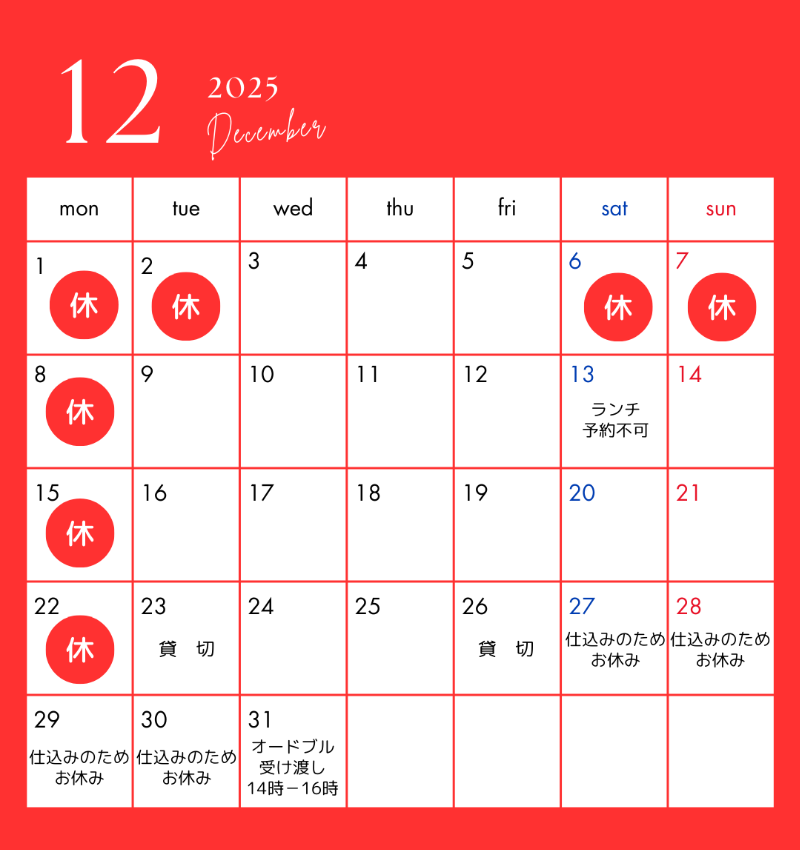 12月のデギュスタシオンコースの受付は終了しました。年明けの受付はまた追って告知させていただきます。