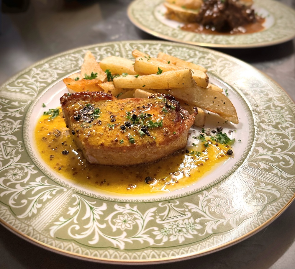 ●富士桜ポーク肩ロースのコンフィ 粒マスタードソース&ポテトフライ…2,700円