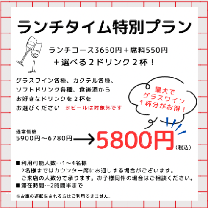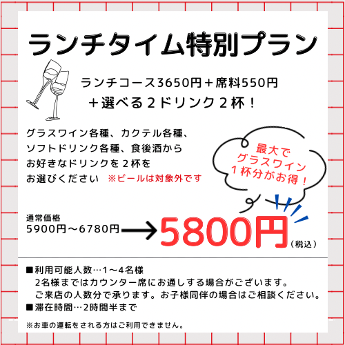 ※ボトルワイン以外の食べ物・飲み物の持ち込みはご遠慮ください。